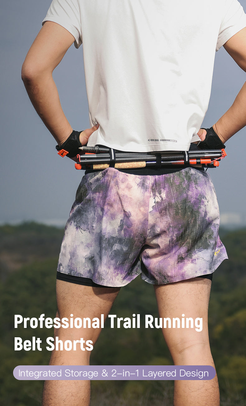 Diseñados para carreras de trail de larga distancia, estos pantalones cortos tipo riñonera 2 en 1 incorporan un sistema de almacenamiento integrado en la cintura para llevar de forma estable y sin rebotes lo esencial, como agua, teléfono y equipo. La malla exterior y el forro interior ligero ofrecen transpirabilidad de secado rápido, mientras que el tejido elástico en cuatro direcciones garantiza una total libertad de movimiento. Con un forro interior extendido para mayor estabilidad y detalles prácticos como tiras reflectantes y trabillas para el dorsal, son la opción ideal para entrenamientos de trail y ultradistancia.